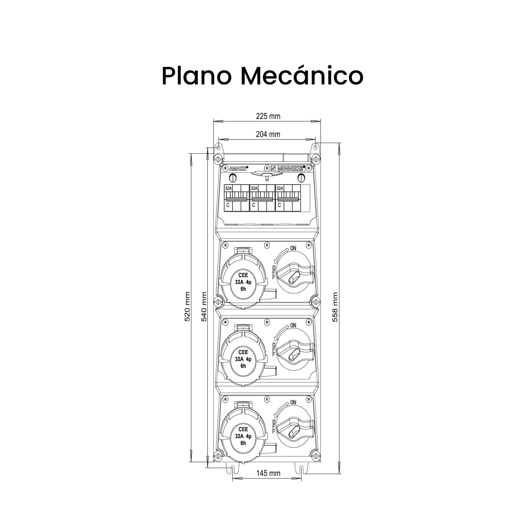 CAJA COMBINADA AMAXX IP67 3 TOMAS 32A 3P+T 400V C/BLOQ MECANICO DUO C/1 INTERRUPT.TERMO 3X32A