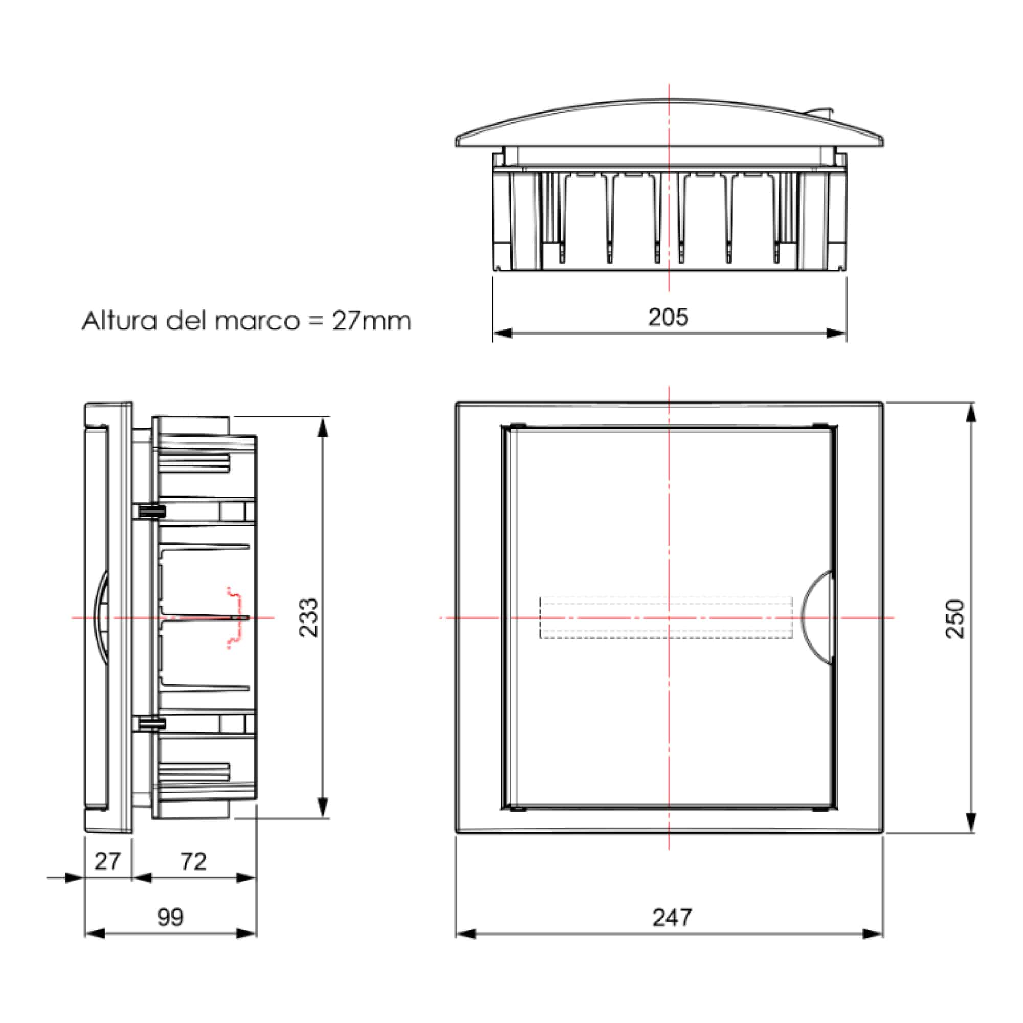 El tablero empotrable es la solución ideal para centralizar y proteger la distribución eléctrica en hogares, oficinas o comercios, integrándose de forma discreta en la pared para mantener la instalación segura, ordenada y con una apariencia limpia y moderna, al tiempo que aloja interruptores y dispositivos de control de forma práctica y accesible.
